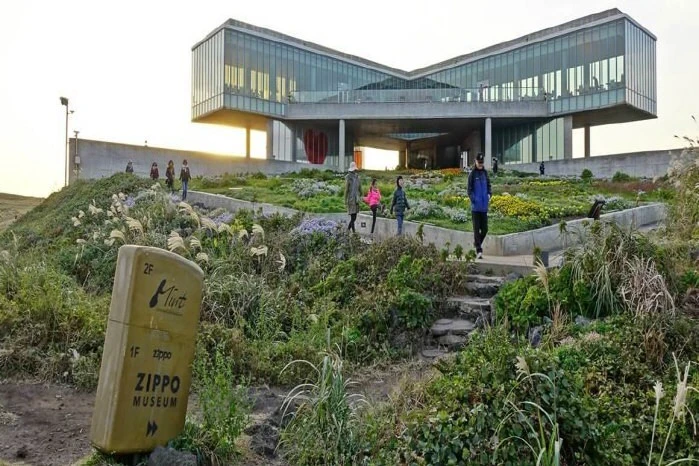 지포 뮤지엄은 제주의 명소인 섭지코지 내에 위치하였다. 성산일출봉을 가까이서 볼 수 있고, 넓은 잔디밭과 바다 풍경에 관광객들의 발길이 끊이지 않는 곳이다. 섭지코지의 풍경을 감상하다 보면 유명 건축가 안도타다오의 작품인 글라스하우스를 볼 수 있다. 그곳 1층에 지포 뮤지엄이 자리 잡았다. 자료출처 : 대한민국구석구석(korean.visitkorea.or.kr) 펜션에서 2.3km, 차량으로 약 4분